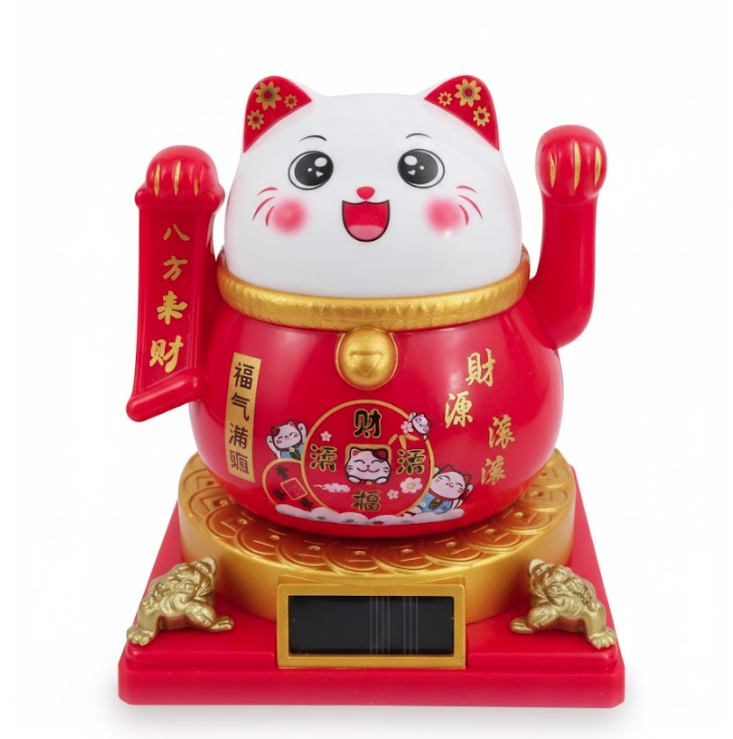 ADORNO SOLAR GATO ROJO SUERTE