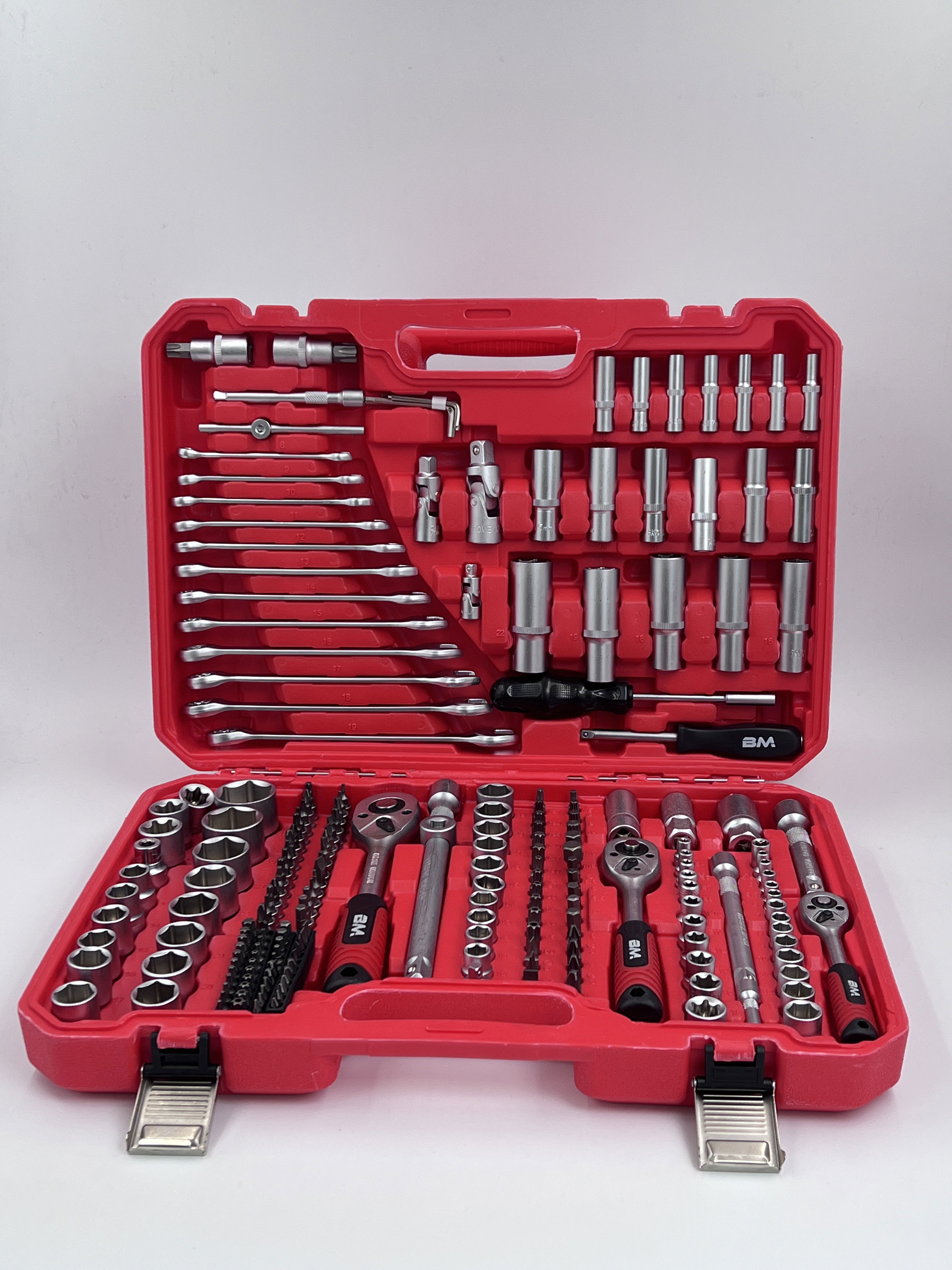 El KIT TUBOS 216 PIEZAS, modelo BM101, es un conjunto integral de herramientas manuales dirigido a profesionales de reparación, entusiastas del bricolaje y usuarios domésticos. El kit incluye 216 piezas de herramientas comunes y de alta calidad, como llaves de diversos tamaños, destornilladores, dados, alicates, etc., organizadas ordenadamente en una robusta caja de herramientas portátil. Es un asistente eficaz para reparaciones de automóviles, electrodomésticos, montaje de muebles o mantenimiento doméstico diario.