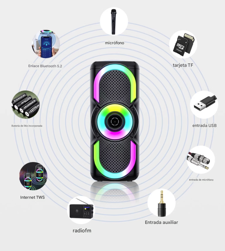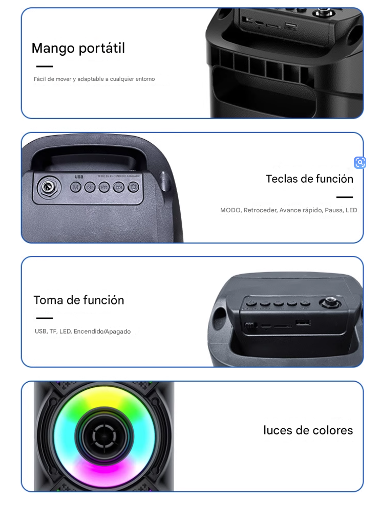 Múltiples formas de reproducción: AUX, microSD y USB.