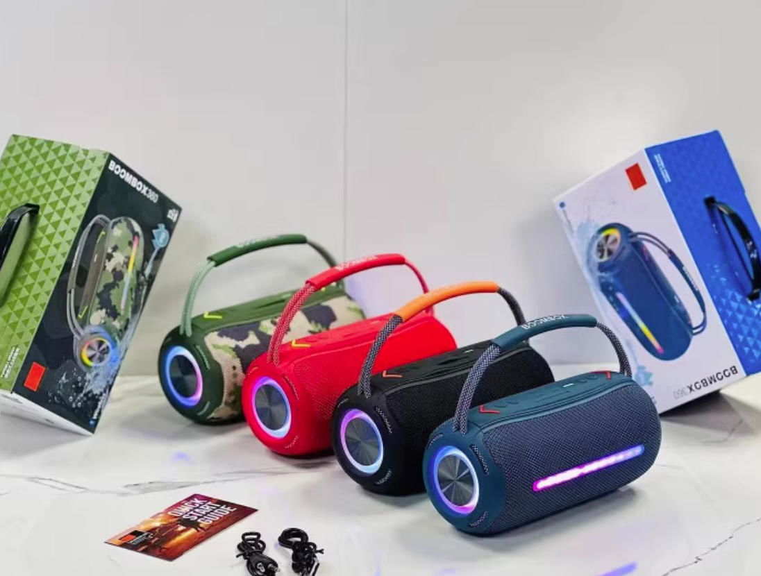 El BOOMBOX360 es un parlante portátil diseñado para brindar sonido envolvente y de alta potencia en cualquier ambiente. Su diseño moderno y resistente lo convierte en el compañero ideal para reuniones, fiestas o uso diario en casa.
