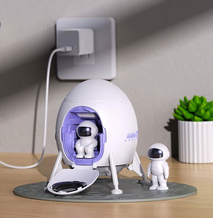 El PROYECTOR DE AMBIENTE LED PARA RELAJACIÓN ASTRONAUTA, modelo DSH1058, es una lámpara proyectora creativa que combina diversión y ambiente de ensueño. Integra la adorable forma de astronauta con la función de proyección de estrellas, no solo sirve como una pieza de decoración de escritorio única, sino que también proyecta patrones románticos de estrellas o del espacio, creando un ambiente de relajación lleno de exploración e imaginación para habitaciones infantiles, dormitorios o espacios de juego.