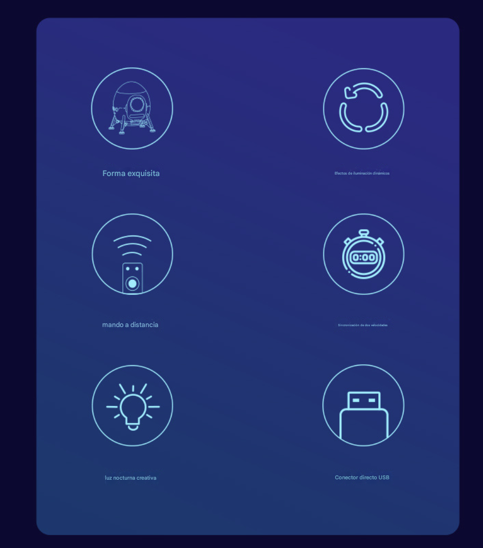 Proyección inmersiva de estrellas: Proyecta un cielo lleno de estrellas o patrones galácticos, crea una atmósfera visual tranquila y de ensueño, ayuda a relajarse y dormir.