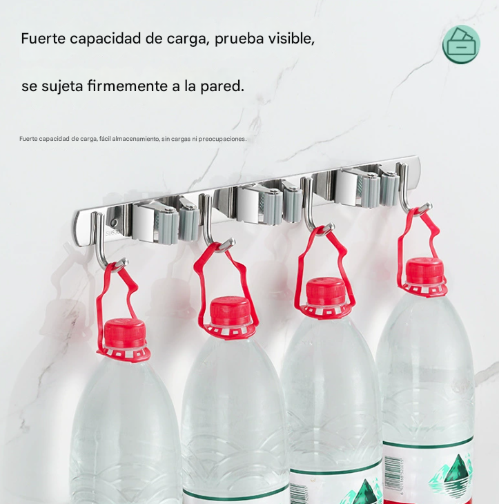 Combinación multifunción: Diseño de 4 pinzas + 5 ganchos para colgar clasificadamente varias herramientas de limpieza con diferentes mangos y formas.