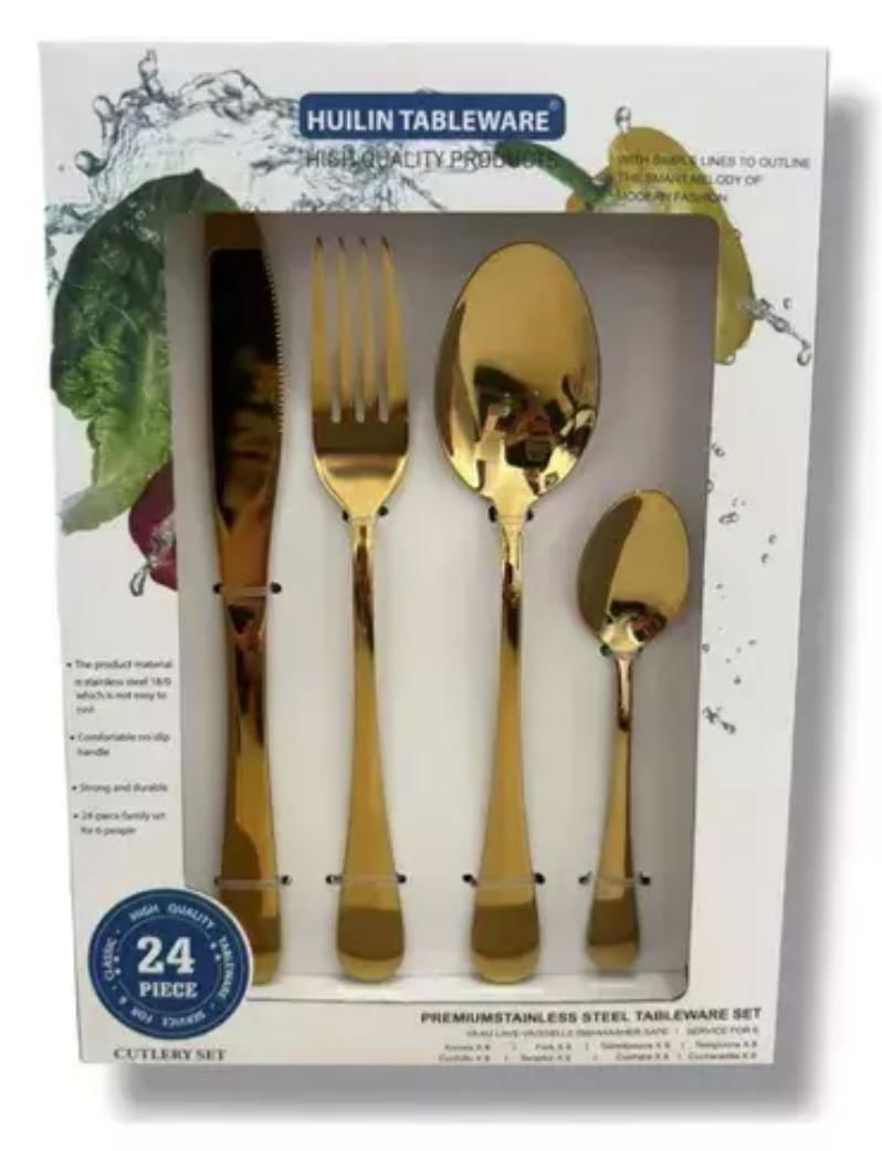 Piezas: 24 unidades (cucharas, tenedores, cuchillos y cucharitas)