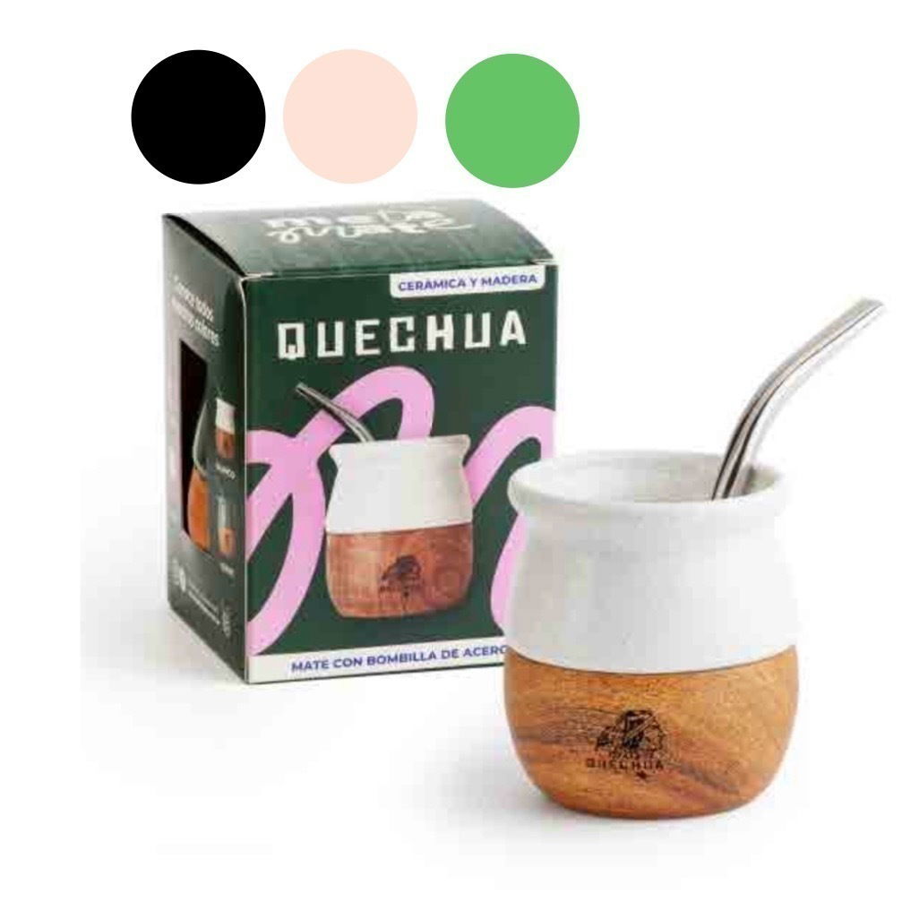 QUECHUA MATE CERAMICA Y MADERA CON BOMBILLA ACERO