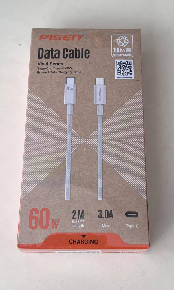 CABLE DE DATOS VIVID SERIES TEJIDO COLORIDO GRIS TIPO C - TIPO C 60W 2 MTS CC112000A BULTO X 200 UNI