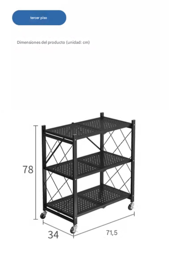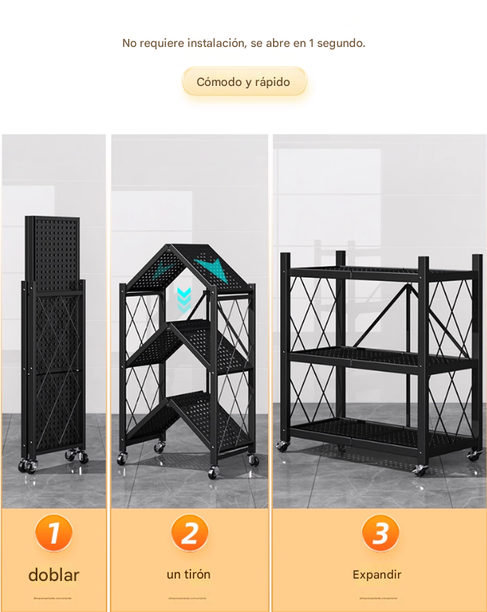 ESTANTERIA PLEGABLE 3 NIVELES CON RUEDAS BULTO : 6 UNI