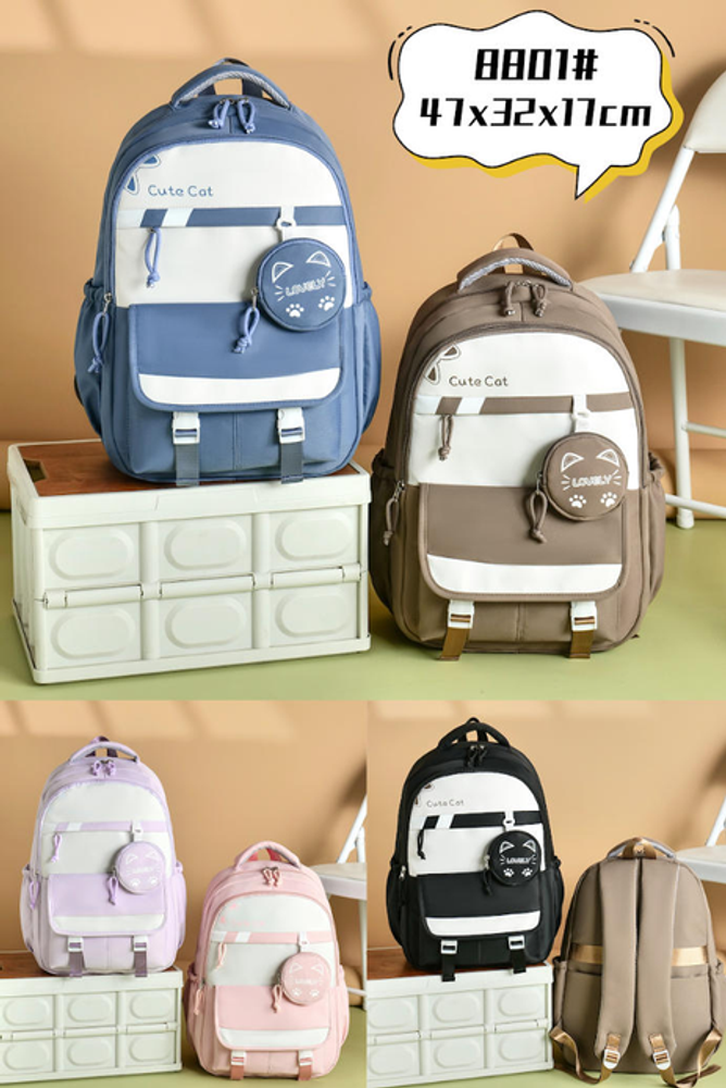 MOCHILA ESCOLAR CUTE CAT 47*32*17 PACK : 5 UNI