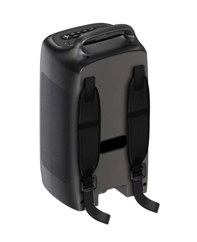 El altavoz Bluetooth portátil de mochila de la marca O8K, número de modelo BM061, es un sistema de sonido potente diseñado para grandes escenarios al aire libre. Equipado con dos unidades de graves de 6.5 pulgadas, proporciona un sonido impresionante y robusto. Incluye dos micrófonos y un control remoto, soporta la función TWS para conexión inalámbrica en serie y cuenta con efectos de luz RGB geniales. Es la opción ideal para baile en plazas, actuaciones al aire libre y fiestas.