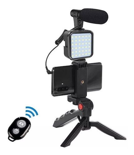 Incluye: Trípode Estabilizador + Luz Led + Micrófono + Control