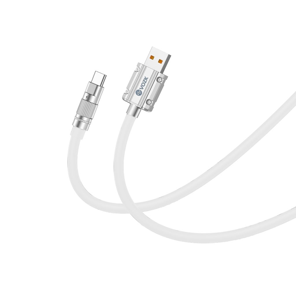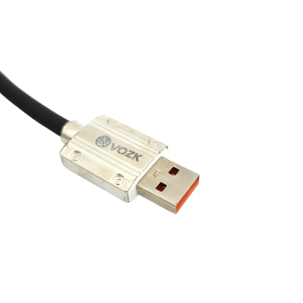 El cable de carga de la marca VOZK con conector USB a TIPO C cuenta con robustos conectores de hierro que mejoran significativamente la durabilidad al insertar y desconectar, así como la resistencia a la torsión. Soporta carga rápida de 2.1A, reduciendo notablemente el tiempo de carga para dispositivos Type-C. Con un cable resistente y conexión estable, es una opción confiable para la carga diaria.