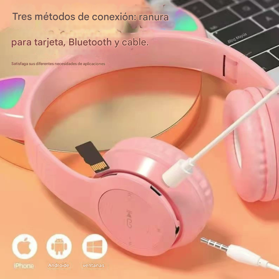 Tipo: Auriculares gamer inalámbricos con diseño de orejas de gato