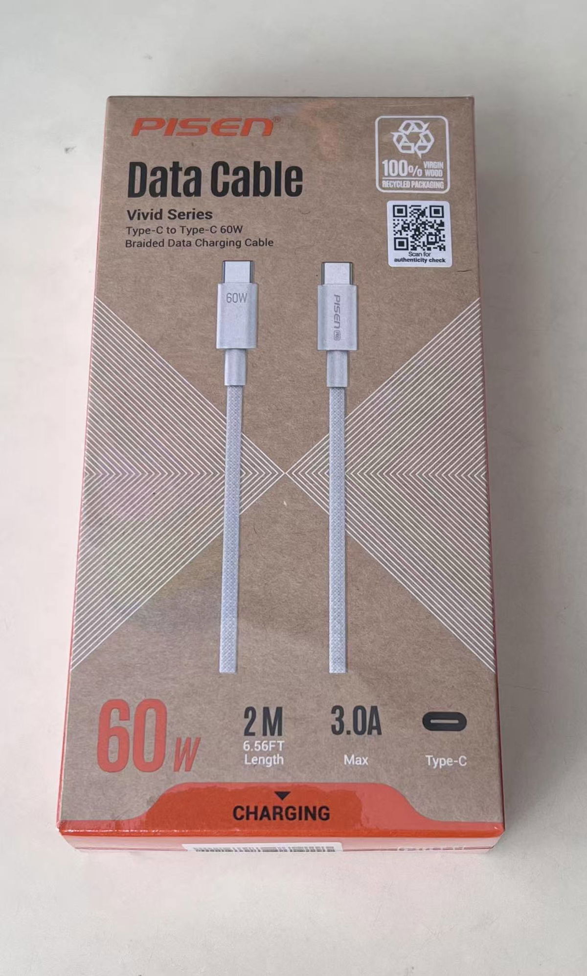 CABLE DE DATOS VIVID SERIES TEJIDO GRIS TIPO C - TIPO C 60W 2 MTS , BULTO X 200 UNI