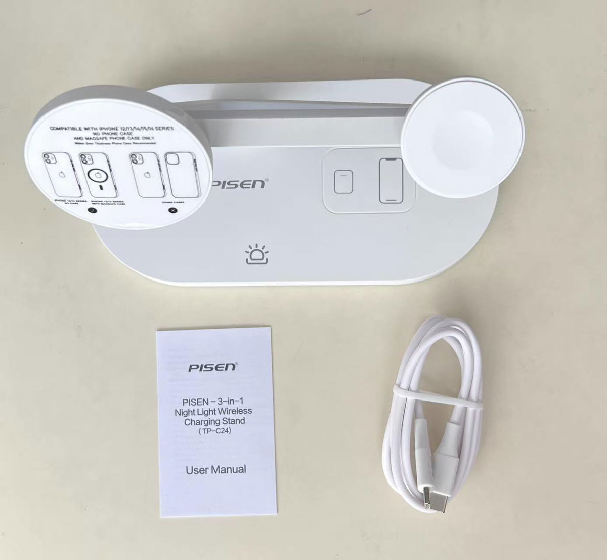 SOPORTE CELULAR BLANCA CON CARGA INALAMBRICA 3EN1 CON LUZ NOCTURNA TPC24B , BULTO X 50 UNI