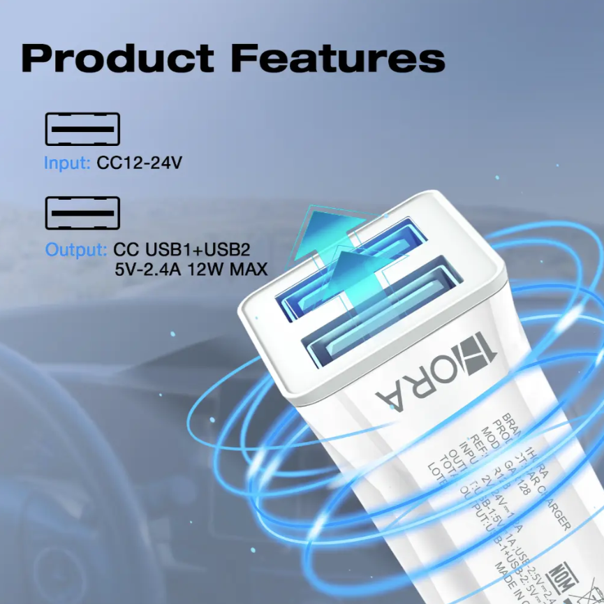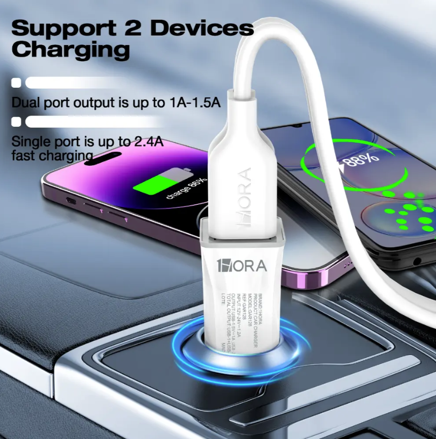 CARGADOR PARA AUTO 12W USB PC+ABS COMPACTO GAR128B