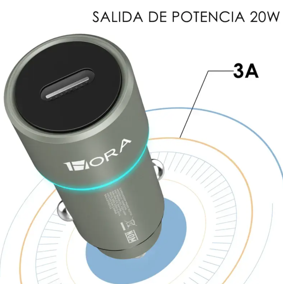 CARGADOR DE AUTO PD 20W SALIDA TIPO C CON CABLE TIPO C GAR156G