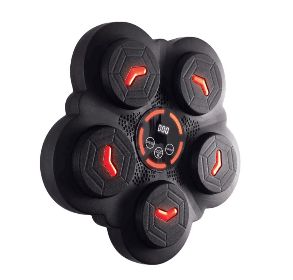 Máquina de boxeo con target y función musical integrada, diseñada para entrenamiento físico y recreación en el hogar.