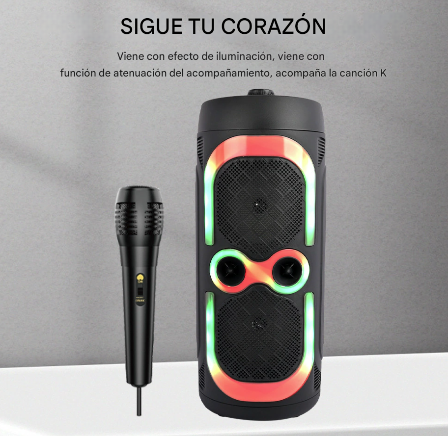 Múltiples modos de reproducción: Soporte para Bluetooth inalámbrico, lectura directa de tarjeta TF/USB, entrada de micrófono con cable, uso flexible.