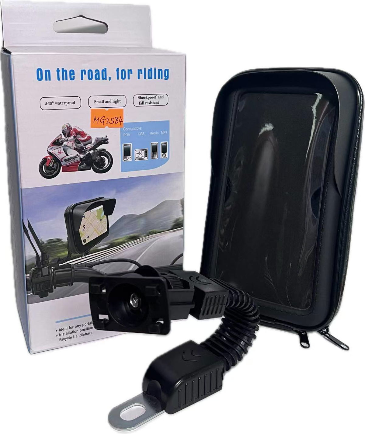 Este soporte para móvil de motocicleta/bicicleta, número de modelo MG2584, está diseñado específicamente para ciclismo. Es compatible con teléfonos de hasta 6.3 pulgadas, sujetándolos firmemente. La cabeza del soporte permite rotación 360° para ajustar libremente la vista horizontal o vertical. Tiene rendimiento resistente al agua, sin miedo a condiciones climáticas lluviosas, es su compañero confiable para navegación y grabación durante el viaje.